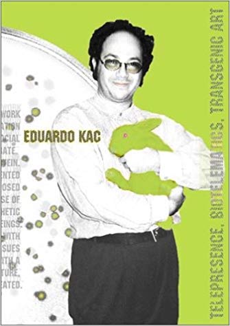 L’américano-brésillien de formation littéraire et philosophique Edouardo Kac fit un grand coup médiatique avec la lapine transgénique fluorescente qu’il baptisa Alba et qu’il inscrivit dans son catalogue d’artiste en 2000. Maîtrise en beaux-arts de l’Art Institut of Chicago, il est récipiendaires de nombreux prix et bourses. Son œuvre se trouve dans les plus grands Musées de la planète. Très prolifique, son processus de recherche et d’expérimentation est largement appuyé par des écrits théoriques à caractère critique. Il s’intéresse à la communication sous toutes ses formes via la bio-informatique et diverses technologies. En 1989, il a produit sa première œuvre de télé-présence en intégrant la robotique commandé à distance. C’est lui qui inventa le mot BioArt, notion qui l’amène à questionner la limite entre l’animal et l’humain ainsi que l’humain et l’inhumain. En 1997, en direct, à la télé brésilienne, il présenta Time Capsule. Cette performance de bioarttransgénique, en présence d’un médecin, consistait à s’implanter dans la jambe un microcircuit afin d’inscrire son corps et son identité dans une base de données d’identification des animaux qui sert à positionner les animaux perdus. Quelques minutes plus tard il fut lu optiquement à Chicago et reconnu comme animal et propriétaire.