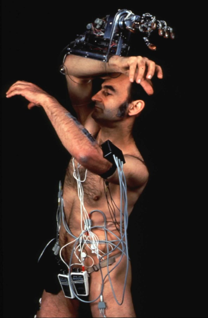 Sterlac est né à Chypre et vécut sa jeunesse marginale en Australie. Son œuvre est principalement orientée sur l’extension des capacités du corps humain. Il est devenu une célébrité mondiale en 2007 grâce à la troisième oreille, produite à partir de cellules souches, qu’il s’est fait transplanter dans le bras. D’abord chercheur dans les arts de la performance dans une université en Angleterre il pousuivit ses recherches à l’université Curtin en Australie. C’est au Japon qu’il eut la révélation du travail sur le corps grâce au butô qui explore l’éphémérité du corps. Désormais dans son œuvre, le corps sera perçu commme un objet obsolète. Suite au choc du butô, la transformation de l’homme en forme non humaine est devenu son projet. Il enseigna l’art et la sociologie sur l’homme/robot, l’Intelligence artificielle, la vie possible en dehors du corps biologique a l’école internationale de Yokohama. Et il réalisa sa série de 25 supensions corporelles de 1976 à 1988. Il produisit aussi des exosquelettes. En 1997 il est professeur d’Honneur au département Art and Robotics de l’Université Carnegie Mellon. Doctorat, honoris causa de plusieurs universités, il obtint le prestigieux prix Ars Electronica dans la catégorie Art hybride, en Autriche.