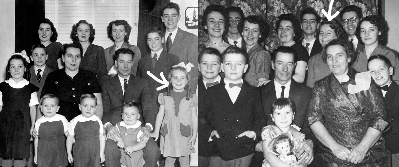 Sur la photo de gauche, Cécile et Ursmord n’avaient que onze enfants. Sur la photo de droite, grâce à l’arrivée de la petite dernière, la douzaine est complète.