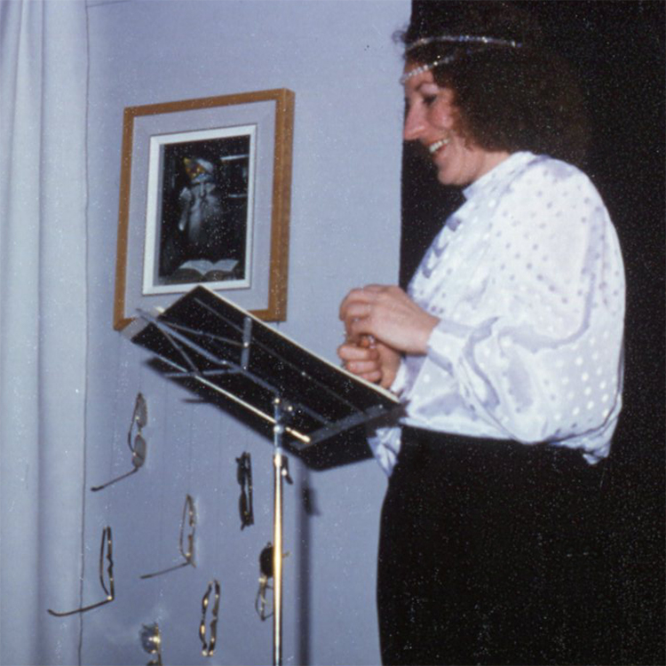 Audette surgissant avec l’énorme gâteau. ( Photo : Claude Gauthier )Irène en pleine performance. ( Photo : Claude Gauthier )En compagnie de Anne. ( Photo : Claude Gauthier )