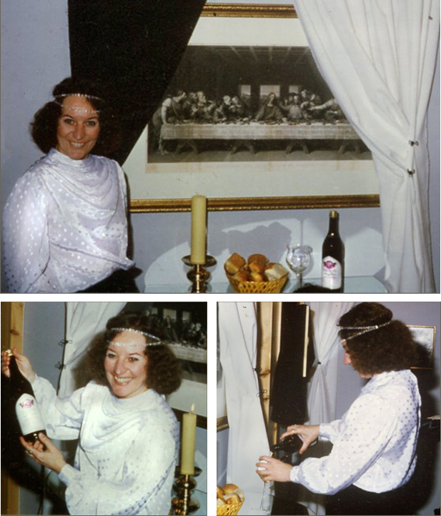 L’ écrivain Umberto Éco nous montre dans le roman Le nom de la rose* que le rire n’avait pas de place dans l’Église de Rome au Moyen-Âge. En contrôlant les spasmes organiques, orgasmiques, incontrôlables du rire, le pouvoir contrôlait aussi les consciences. Il fallu attendre l’humaniste, moine et médecin François Rabelais, l’auteur de Gargantua, pour que le rire s’introduise grossièrement puis finement dans la culture française en fonction des nouvelles hiérarchies sociales. C’est en lisant Alain Vaillant que j’ai compris que cette exposition-performance s’inscrivait dans un motif constant dans la culture occidentale : le rire et le vin. Voilà donc où je voulais en venir, en faisant ce détour dans l’histoire du Rire. Avec le recul des ans, je comprends mieux mon processus de 1984 alors que j’étais totalement immergée dans l’action créatrice.